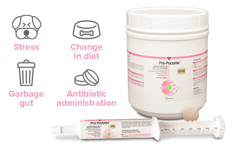 Pro-Pectalin is a great choice for dogs and cats experiencing stress from boarding or moving, changes in diet, garbage gut, and/or antibiotic administration.